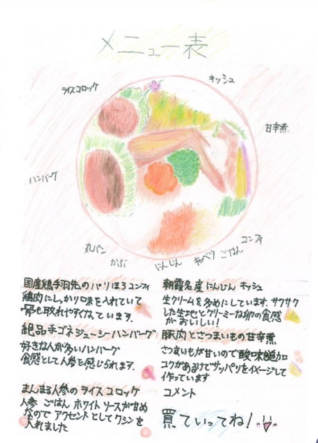 朝霞第6小学校の6年生・各クラスが考えたお弁当やデザートが、朝霞で活躍するお店などとコラボしてオリジナルのメニューを商品化、販売する取り組みのようです。